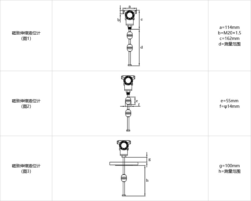 磁致伸縮液位計工作時,變送器的觸發(fā)電路部分激勵出脈沖電流,電流沿磁致伸縮線傳播產(chǎn)生脈沖電流磁場。在磁致伸縮液位計的傳感器測桿外配有磁性浮子,浮子沿測桿隨液位的變化而發(fā)生位移。在浮子內(nèi)部裝有磁環(huán),當(dāng)脈沖電流磁場與浮子磁環(huán)磁場相遇時,浮子周圍的磁場發(fā)生改變從而使磁致伸縮線在浮子停留的位置產(chǎn)生一個扭轉(zhuǎn)波脈沖,這個脈沖以固定的速度沿磁致伸縮線傳回至變送器由檢測電路檢出,通過中央處理器計算脈沖電流與扭轉(zhuǎn)波脈沖的時間差可以準(zhǔn)確地確定出浮子所在的位置,即液面的位置。變送器模電轉(zhuǎn)換電路輸出4-20mA或RS485 MODBUS信號,從而實現(xiàn)液位信號遠傳的目的。