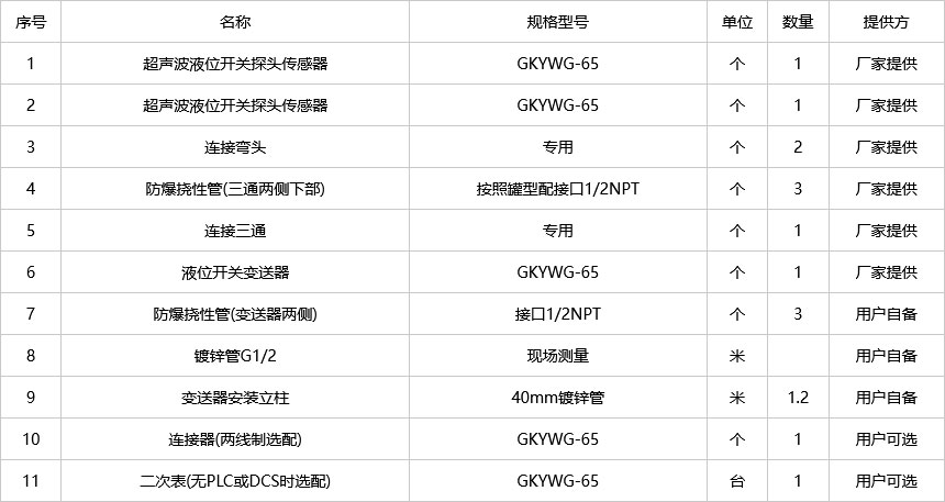 常壓罐液位開關(guān)探頭傳感器安裝距離為650m至1100m之間。球罐、臥式罐(壓力容器)安裝液位開關(guān)的兩個(gè)探頭傳感器安裝距離在1100mm至1500m之間。